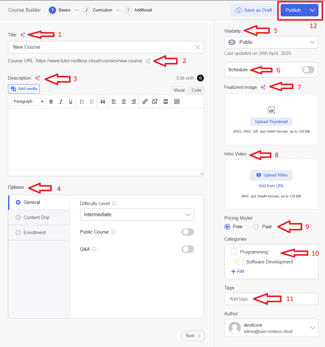 – Difficulty Level = Untuk mengatur tingkat kesulitan pada course.