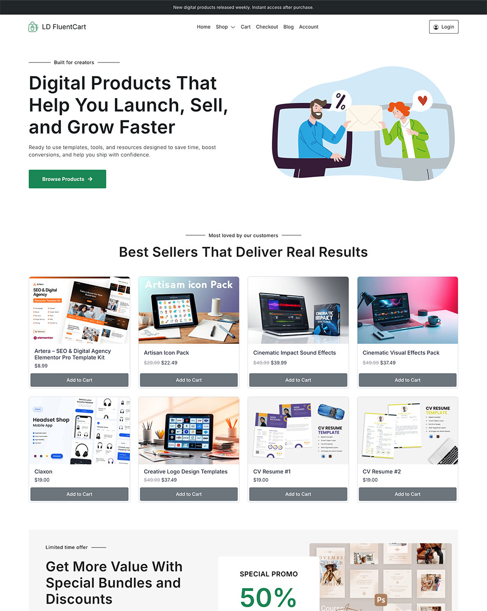 Tidak ingin menggunakan WooCommerce? Anda bisa mempertimbangkan FluentCart, salah satu alternatif WooCommerce yang mulai hadir di akhir tahun 2025. Saat ini, FluentCart sudah cukup stabil untuk digunakan berjualan produk digital di market internasional, dan cocok untuk Anda yang ingin mencoba pendekatan yang lebih modern dan ringan.