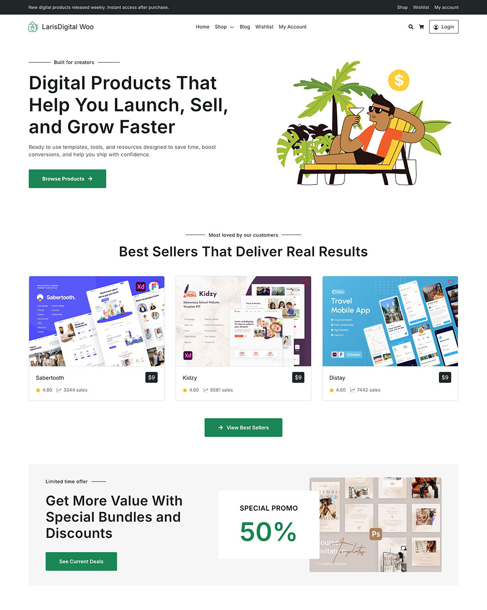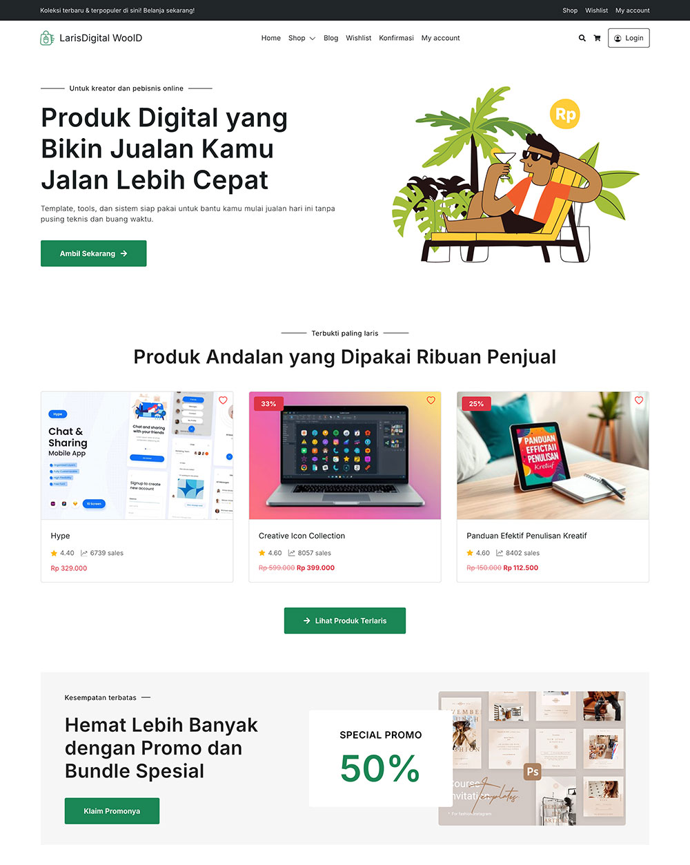 Theme WooCommerce Khusus Produk Digital, Siap Pakai Tanpa Ribet